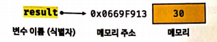 식별자 result는 값 30이 저장되어 있는 메모리 주소 0x0669F913을 기억해야 한다.