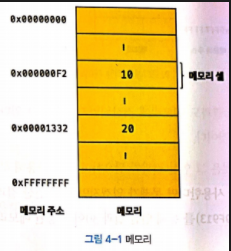 메모리 셀 하나의 크기는 1바이트이며, 컴퓨터는 메모리 셀의 크기로 데이터를 저장하거나 읽어 들인다.