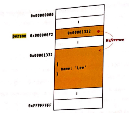 객체를 할당한 변수는 기억하는 메모리 주소를 통해 메모리 공간에 접근하면 참조 값reference value(생성된 메모리 공간의 주소가 저장되어 있음)을 통해 실제 객체에 접근한다.
