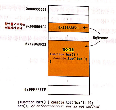 -> 함수를 가리키는 식별자가 없으므로 위 예제의 bar 함수는 호출할 수 없다.