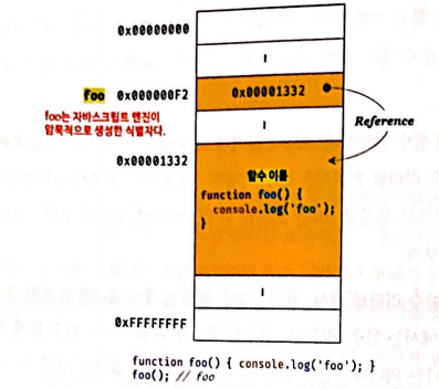 위의 예제로 본다면 함수 이름 foo가 아니라 자바스크립트 엔진이 암묵적으로 생성한 식별자 foo이다.