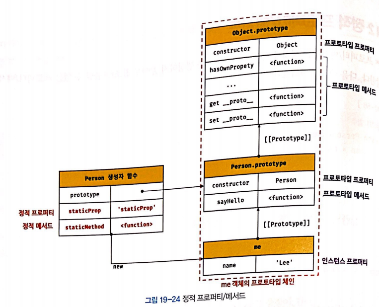 정적 프로퍼티/메서드는 인스턴스의 프로토타입 체인에 속한 객체의 프로퍼티/메서드가 아니므로 접근 불가능하다.