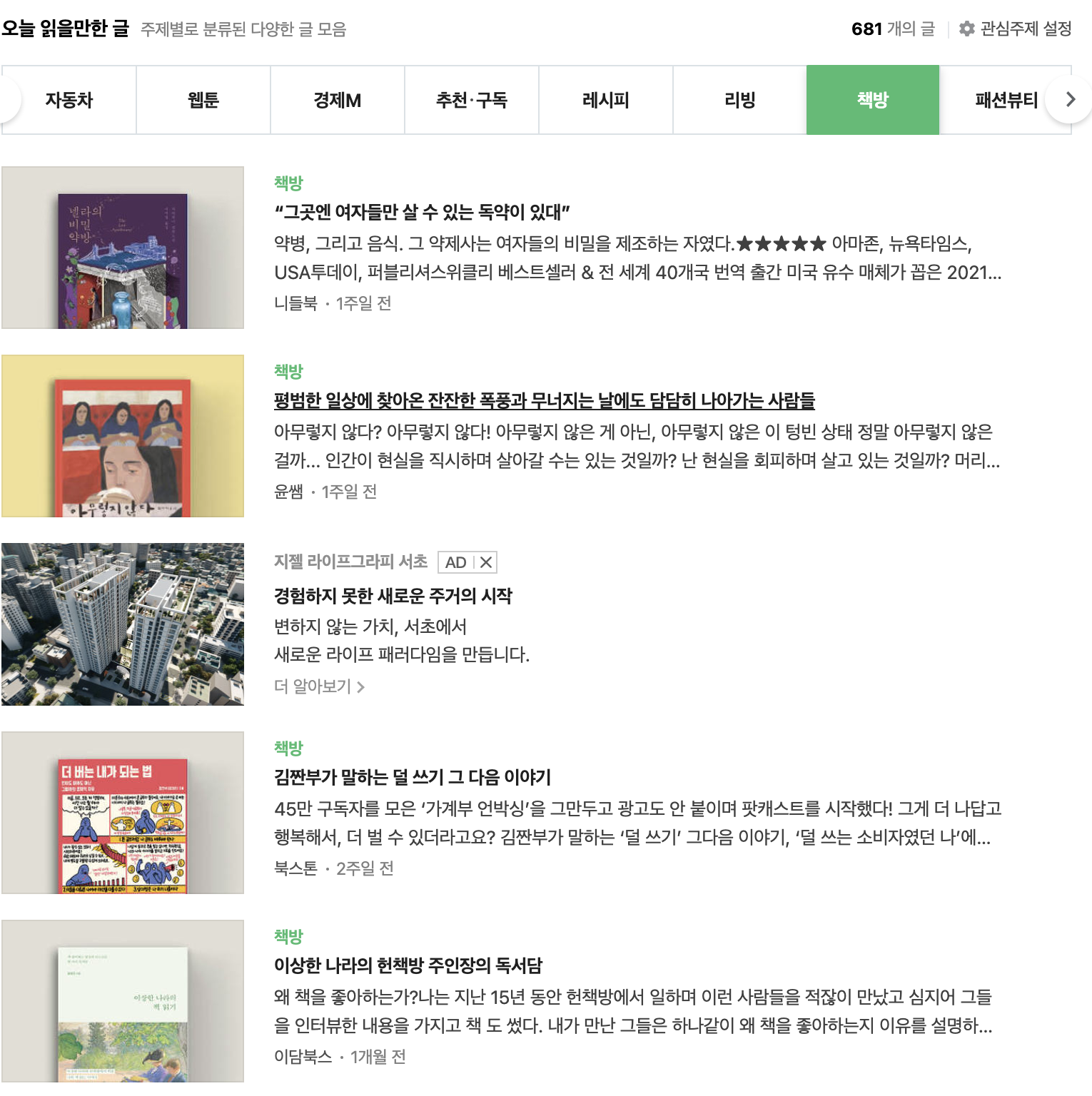 네이버에서 오늘 읽을만한 글을 크롤링하고 싶다고 가정하자.